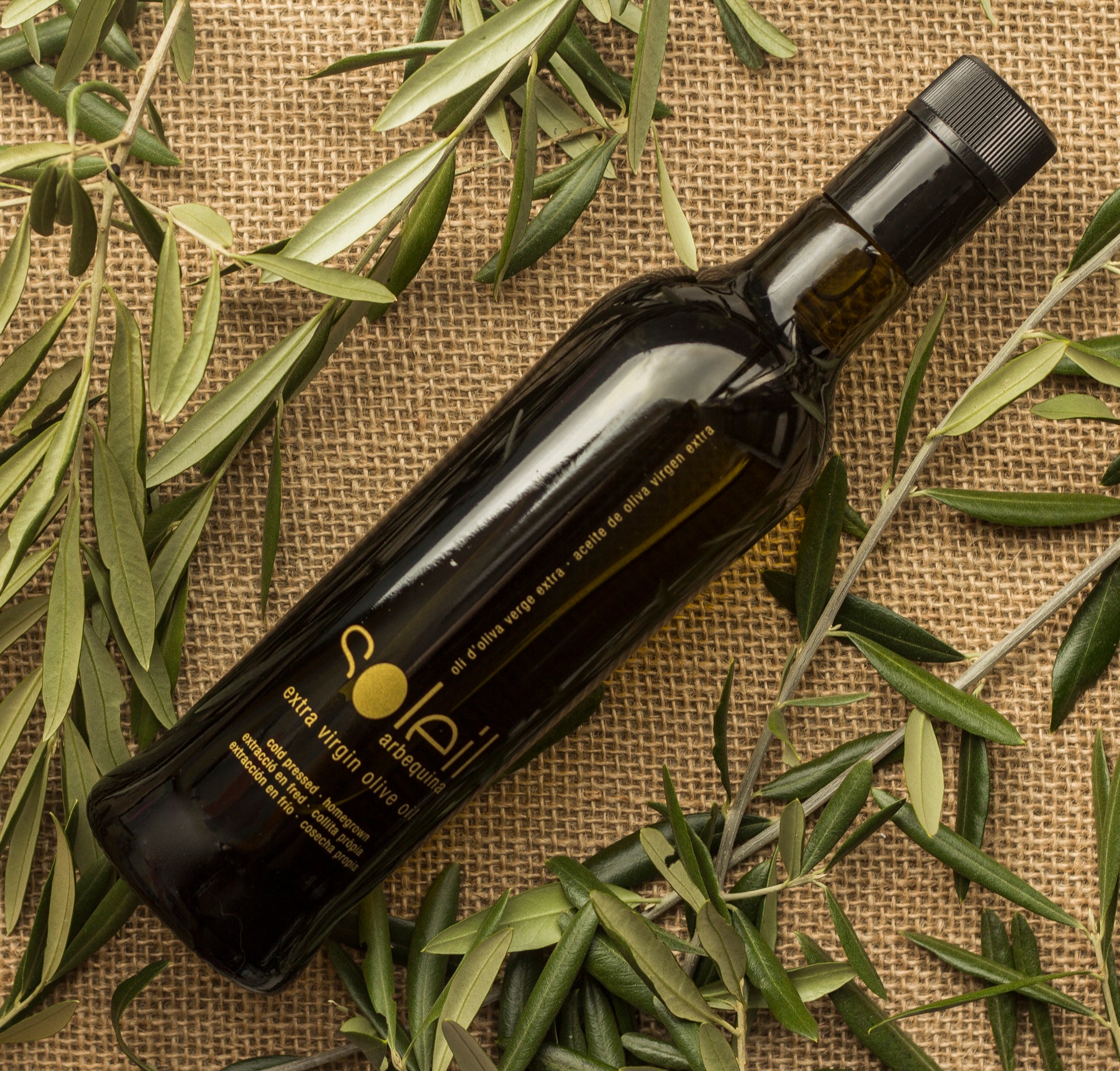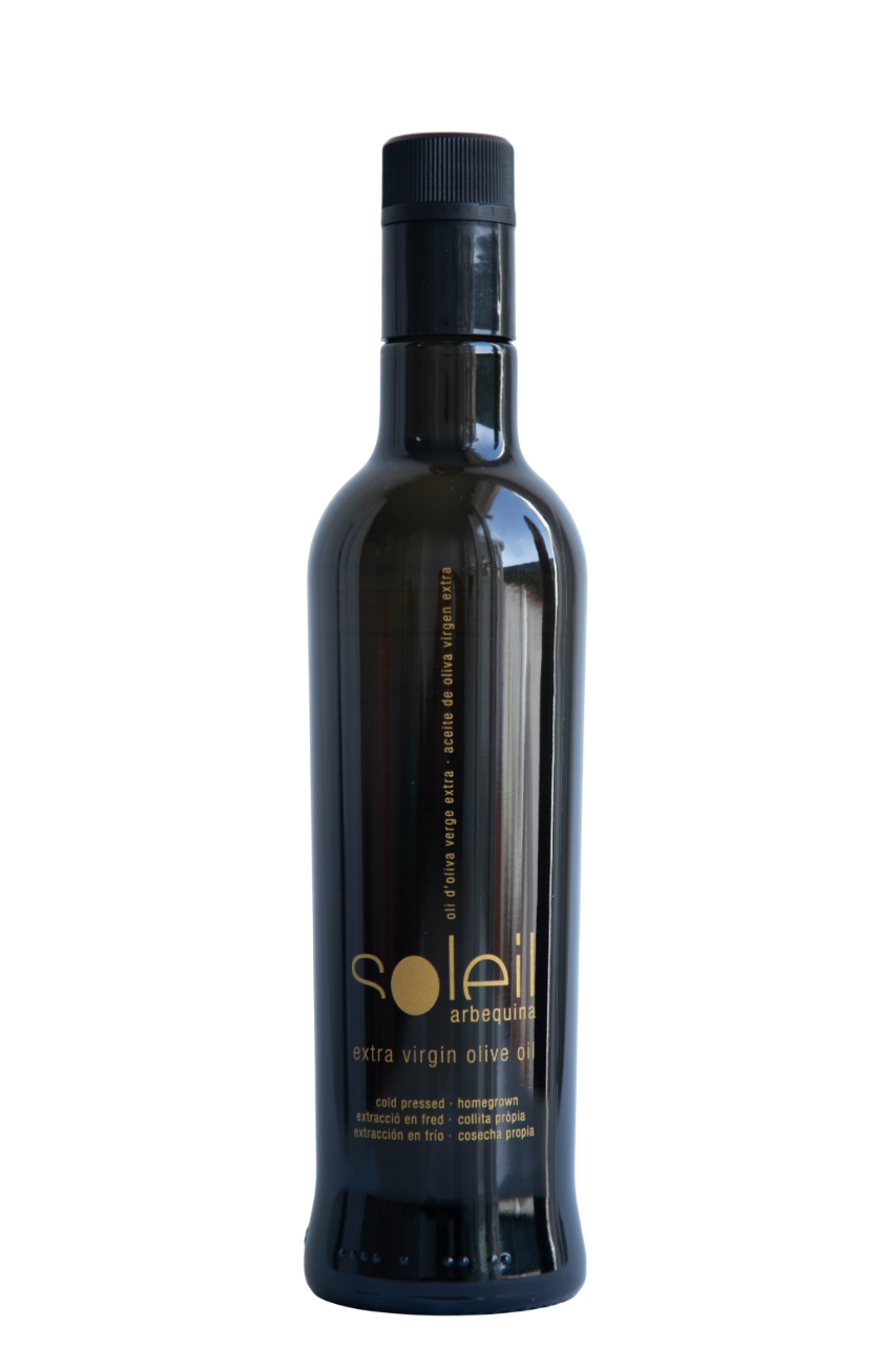 SOLEIL Arbequina extra virgin olive oil is the natural juice extracted from Arbequina olives, harvested on our farms located in El Soleràs (Lleida), the area where the Arbequina olives originate.