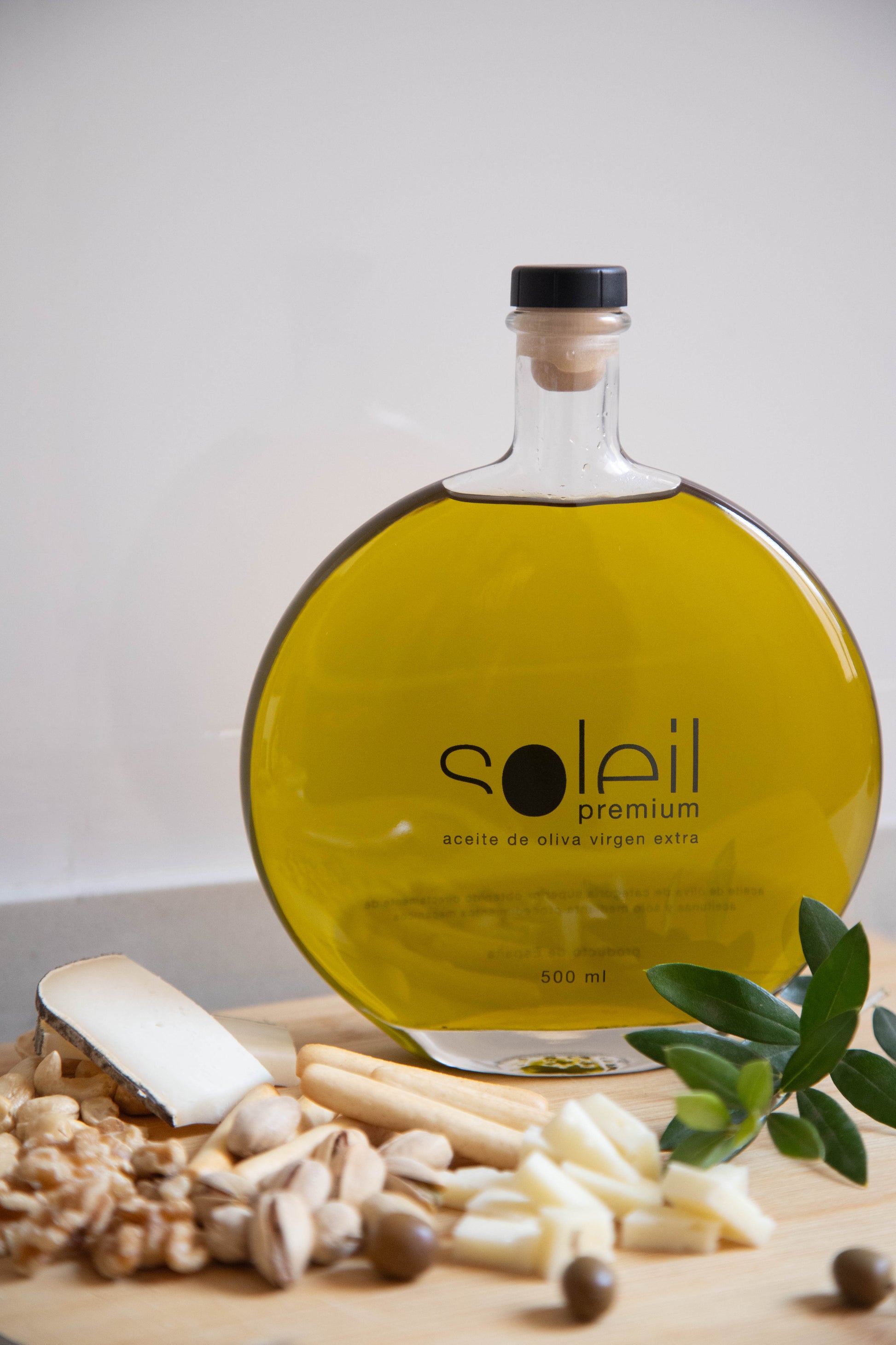 Soleil Premium extra virgin olive oil is the natural juice extracted from top-quality green Arbequina olives. It is made from healthy, top-quality olives from the best olive trees in integrated production and cold extraction, to which we carefully cultivate and harvest.