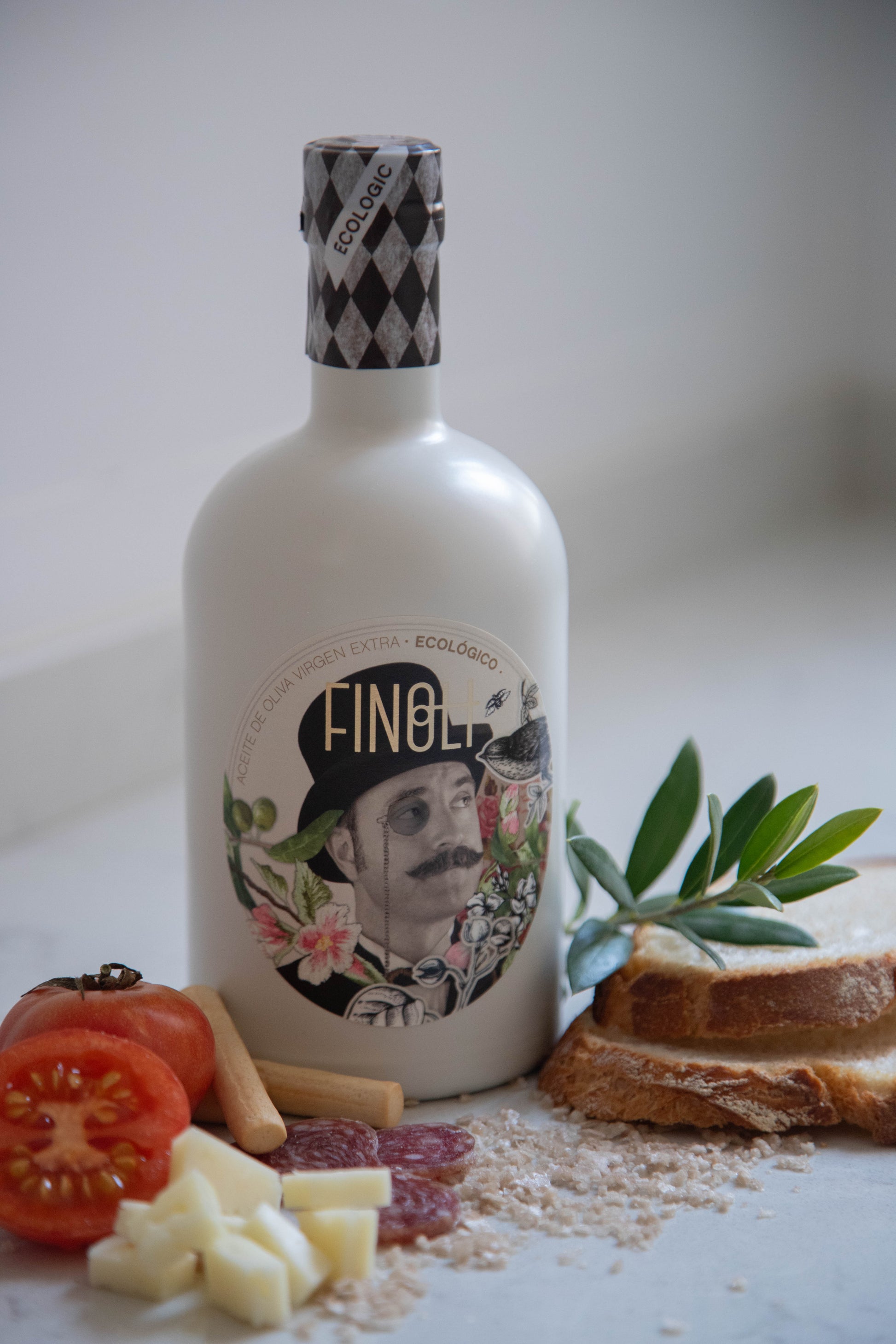 Aceite de producción ecológica certificada procedente de nuestros olivos y envasado en una botella diseñada para dar un toque de distinción y elegancia al aceite de oliva virgen extra orgánico de alta calidad, FINOLI.